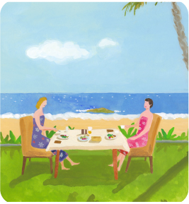 ゆっくりすぎていきます。海を目の前にビーチでたそがれたり、天気の良い日は泳いだりも。